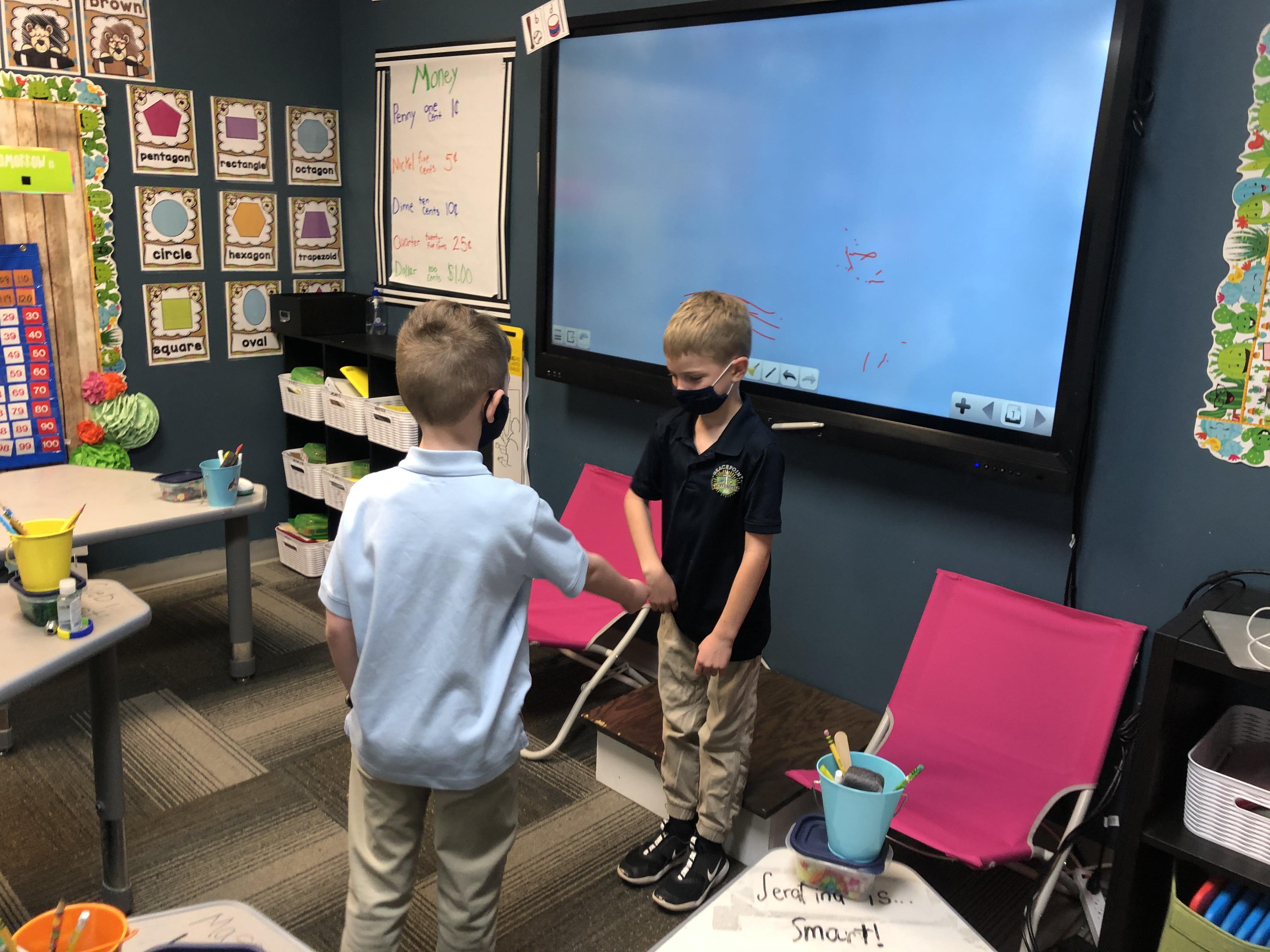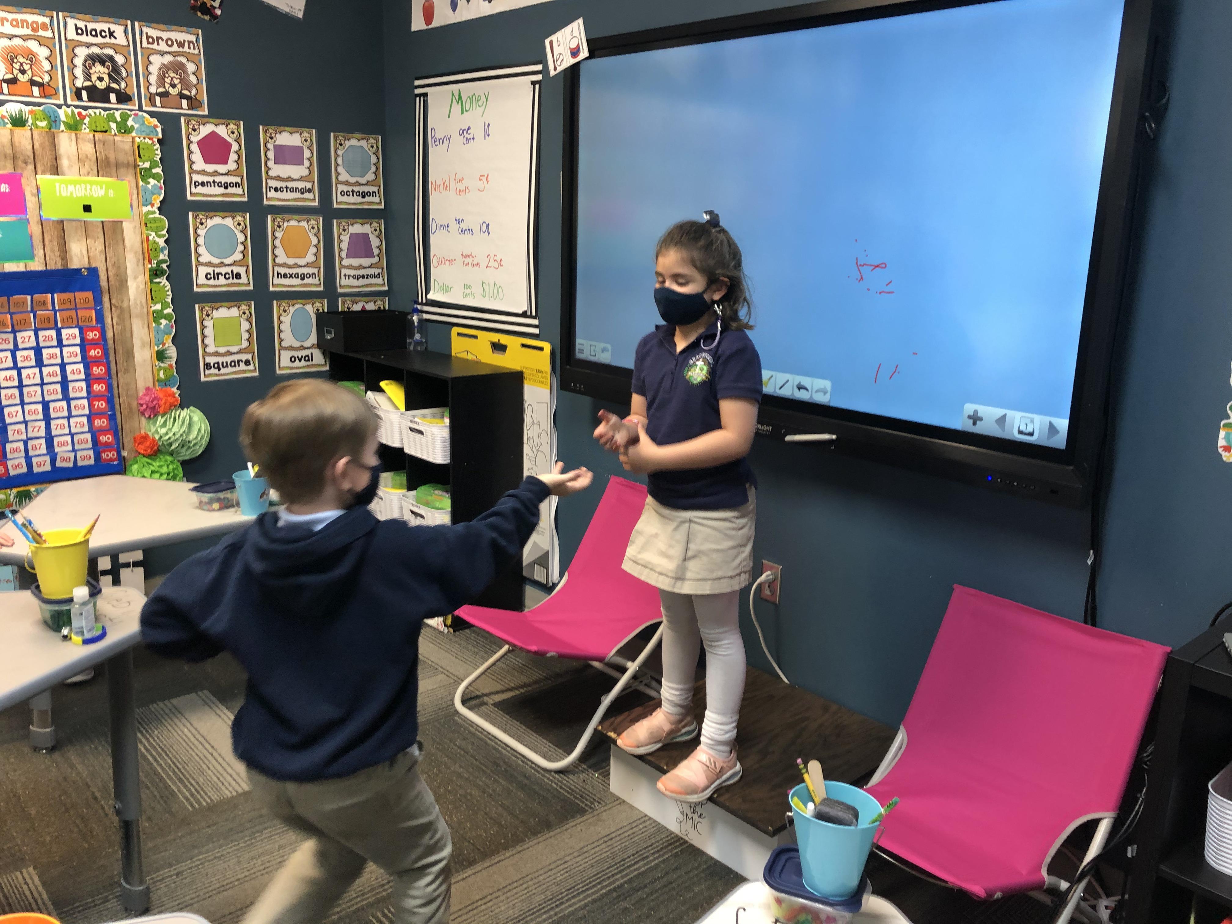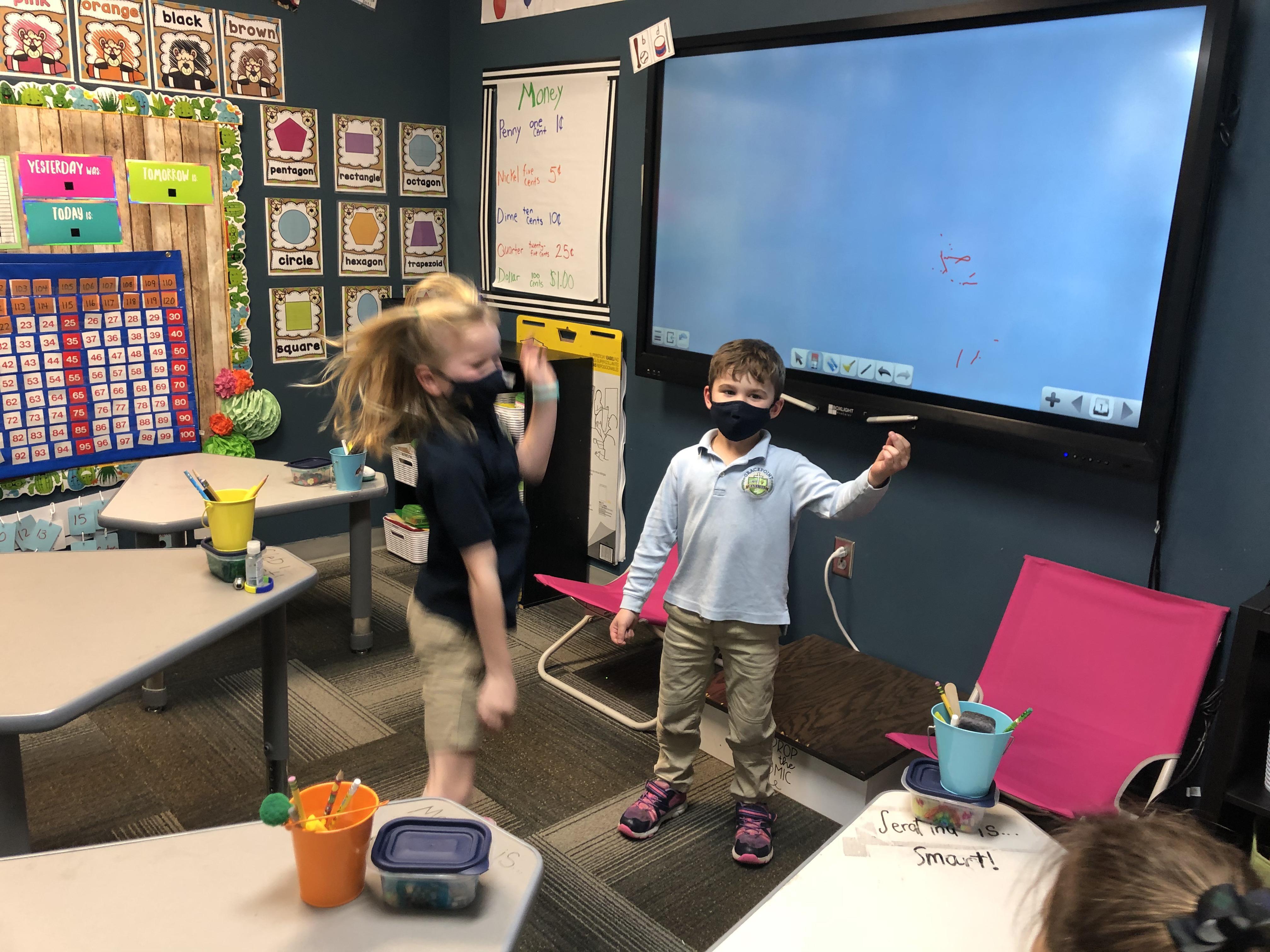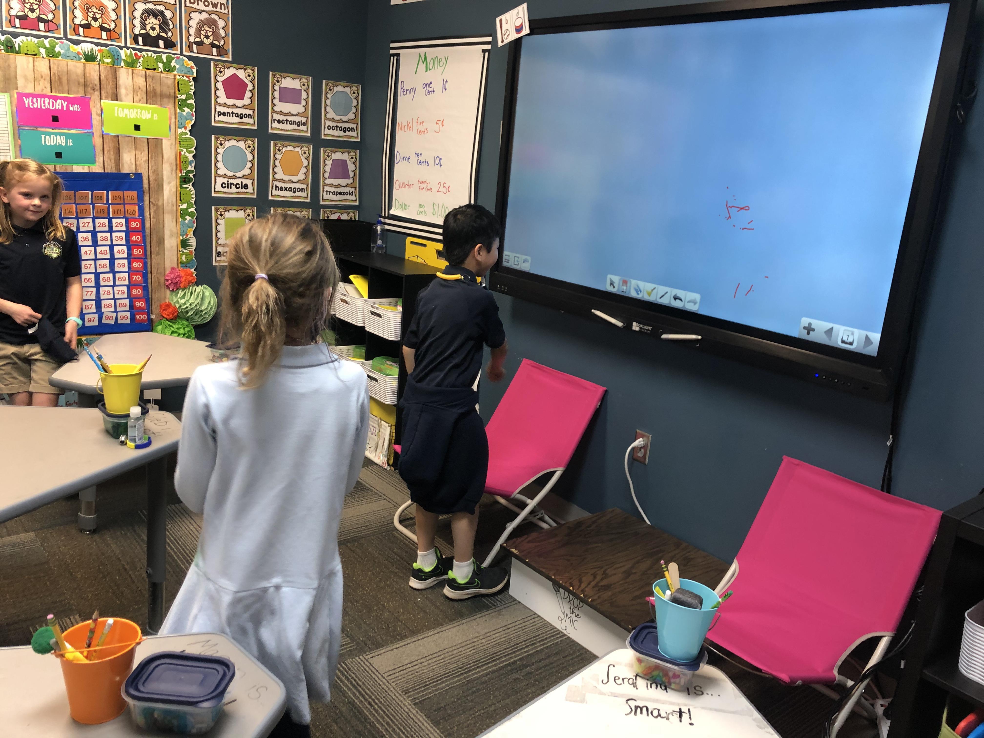 "Trasketball" Math: Money edition! First grade loved being introduced to the game of Trasketball today when we played in math. Students were divided into two teams, chose a team name, and then were asked a money question one at a time! If they got it correct, they got to shoot a basket to earn a point for their team. The team with the most points at the end of the game won. It was fun, a little lot, and very good math practice.