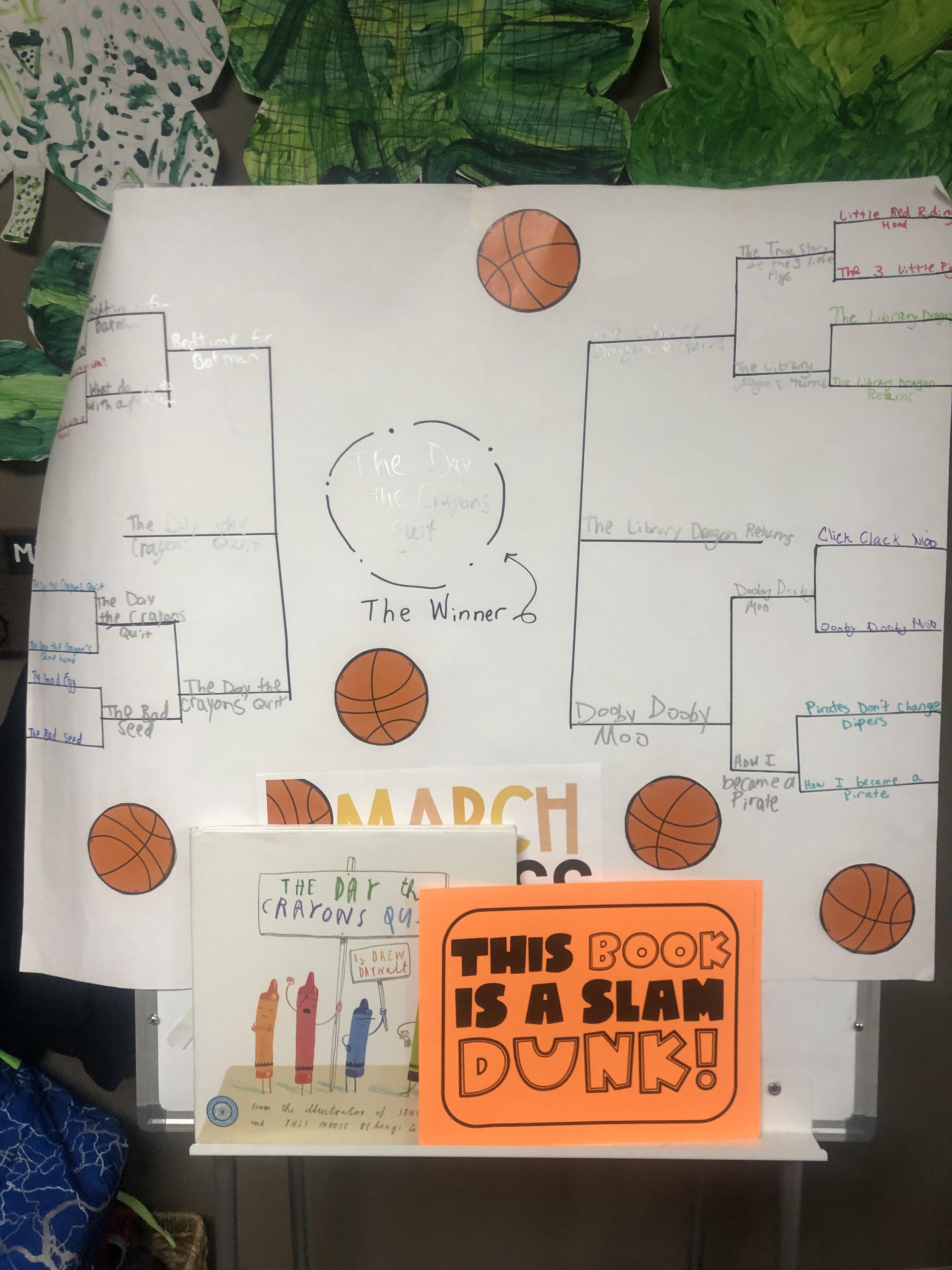 The winner of our March Madness: picture book edition bracket was The Day the Crayons Quit! It was so fun to read a bunch of different books and vote on our class favorite. Your child came home on Friday with a March book Madness bookmark to use at home with their favorite book.