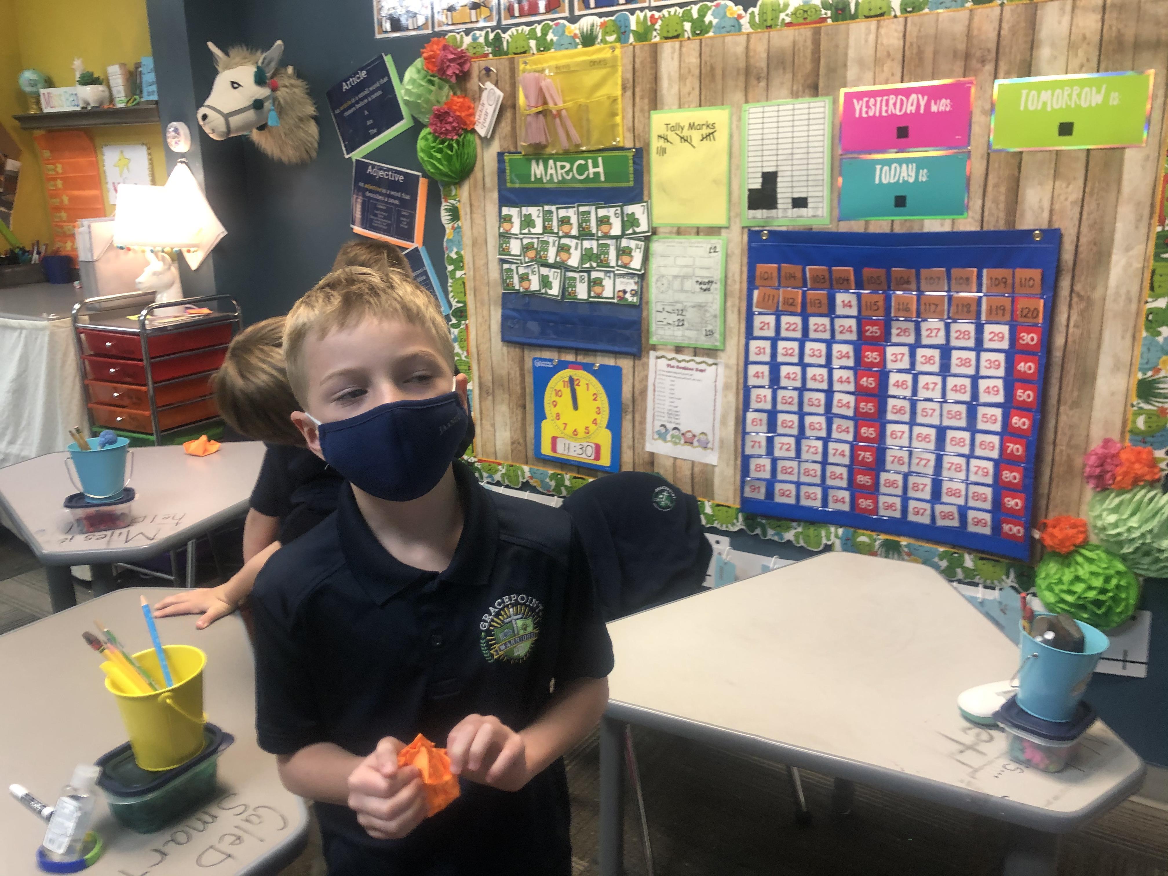 This week, we will be learning about counting money in math, producers, consumers, goods, and services in social studies, and reviewing nouns, verbs, and adjectives in wiring. We have a Zoom mystery reader today as well!