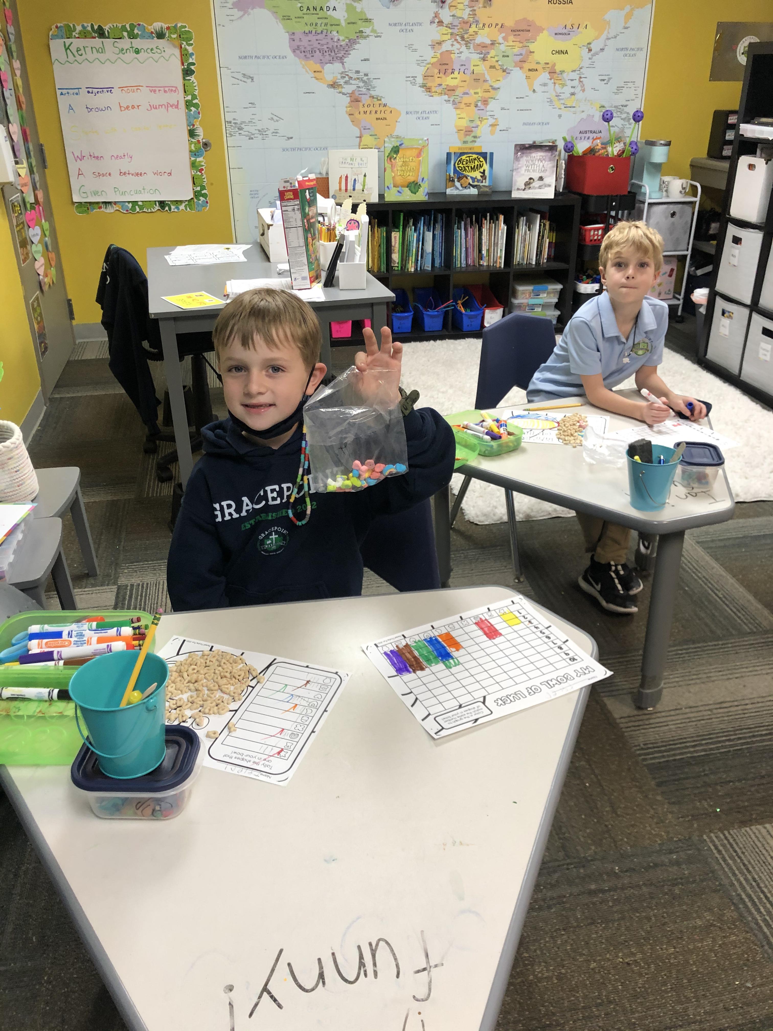 Lemonade Stand: This Friday, from 12:15-1:15, first grade will be holding a "lemonade stand" for the faculty and staff of GRACEPOINT. We will spell pink lemonade pouches, regular lemonade pouches, strawberry shortcake rolls, and Swiss rolls to our teachers and other staff members for 50 cents each. The purpose of this activity is to combine our study of money in math with our economics study in social studies. Students will be asked to count out the money their costumers use to purchase their goodies and explain to them what consumers and producers are. They are very excited and it will be a fun, real-world learning experience for our class.
