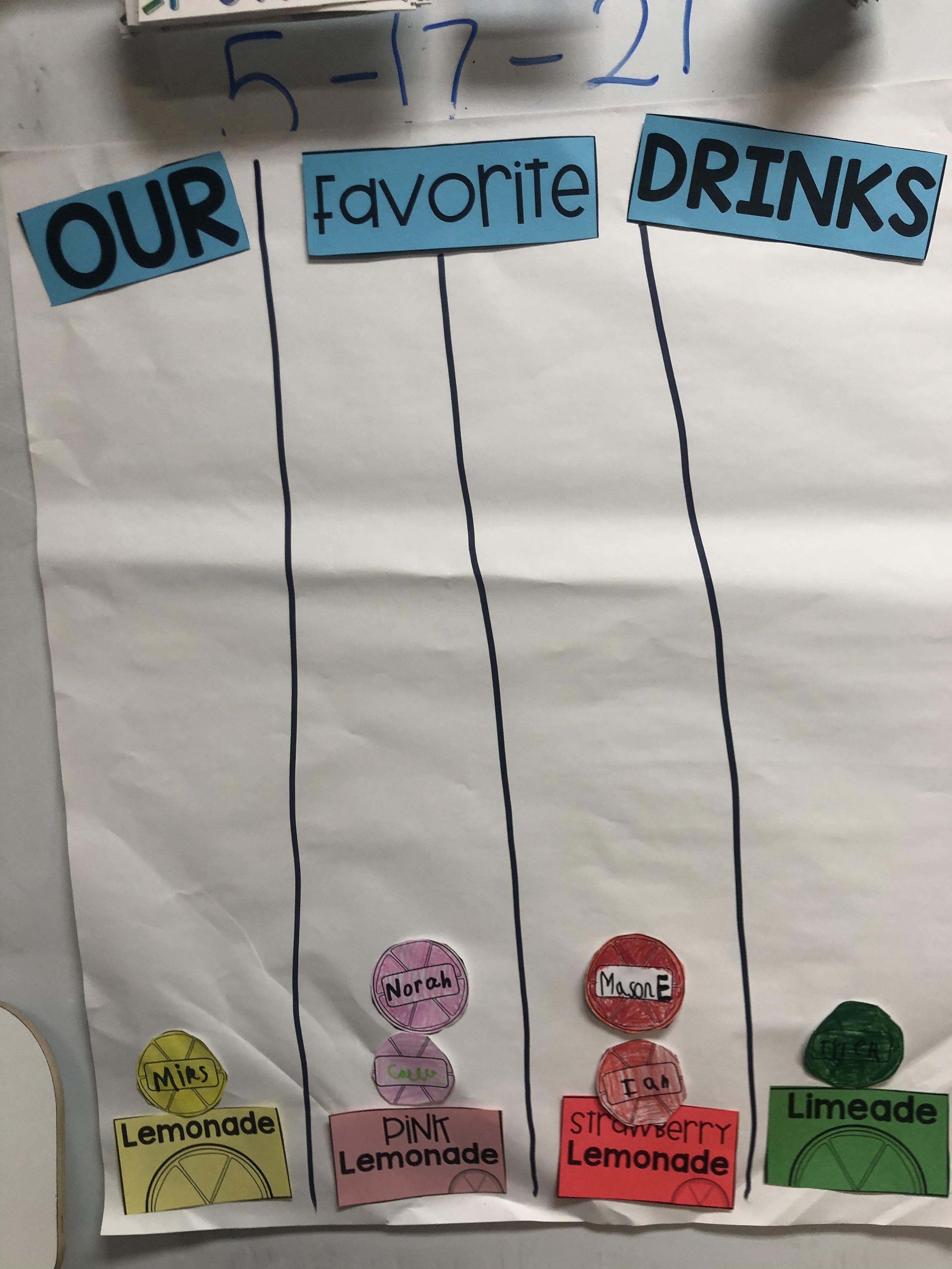 We made a graph of our favorite drinks as a class and answered questions about the graph for math class today!
