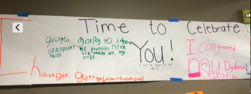 Today we wrote something we accomplished that made us feel proud of ourselves on a banner to hang outside of our classroom for the next week! I am extremely proud of this class for all their hard work and progress during their first grade year and first year at GRACEPOINT!