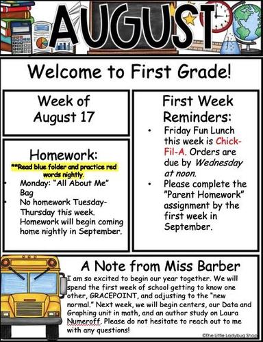 Thank you so much for a fantastic first week of first grade! Please see the attachment for announcements and a look ahead.