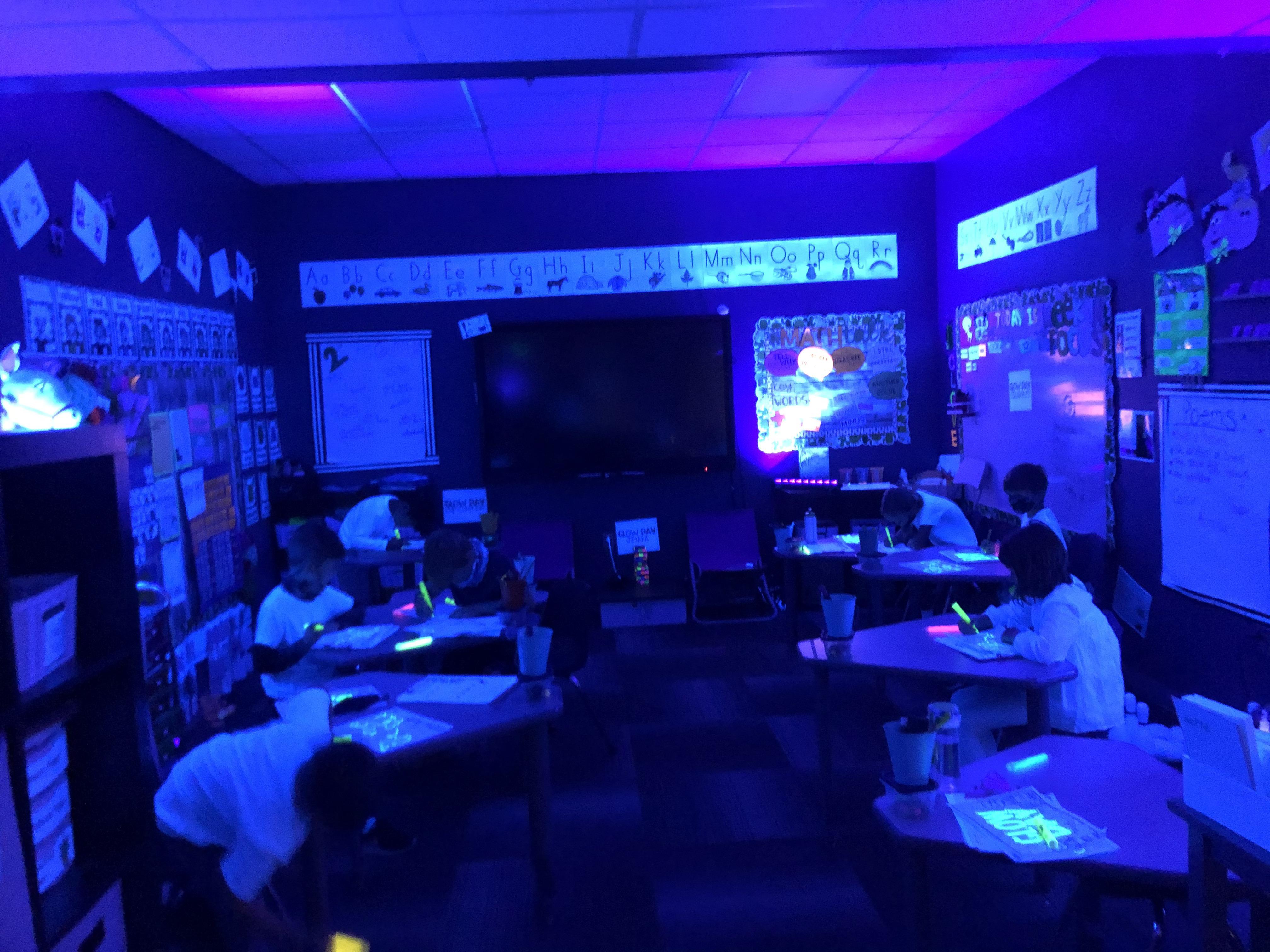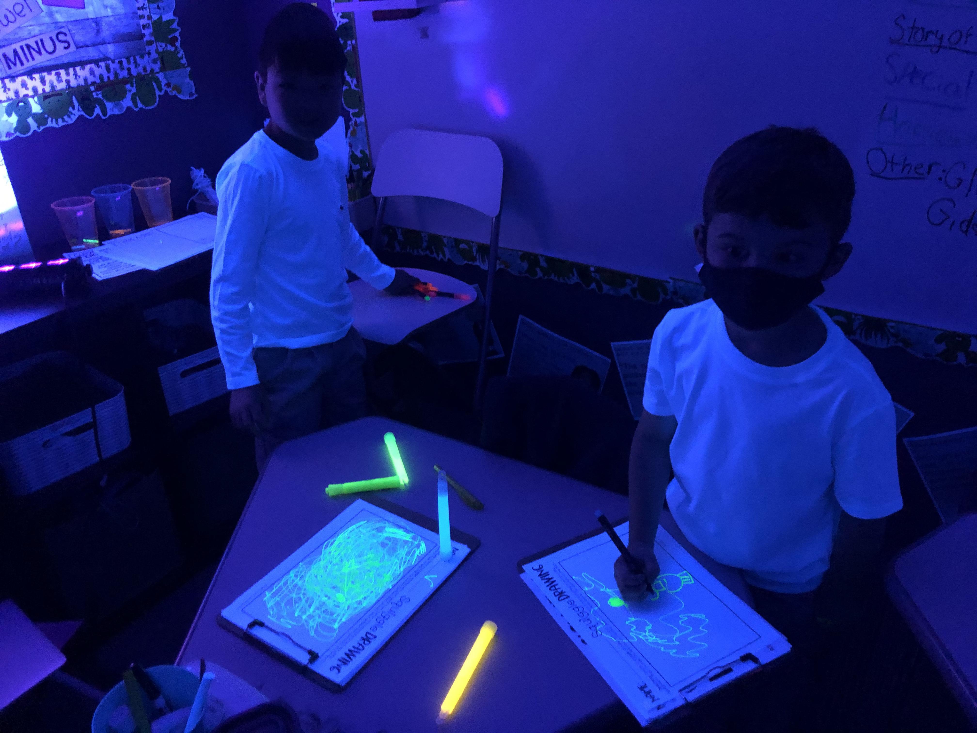 Glow day Scribbles: students used highlighters to turn simple lines into works of art