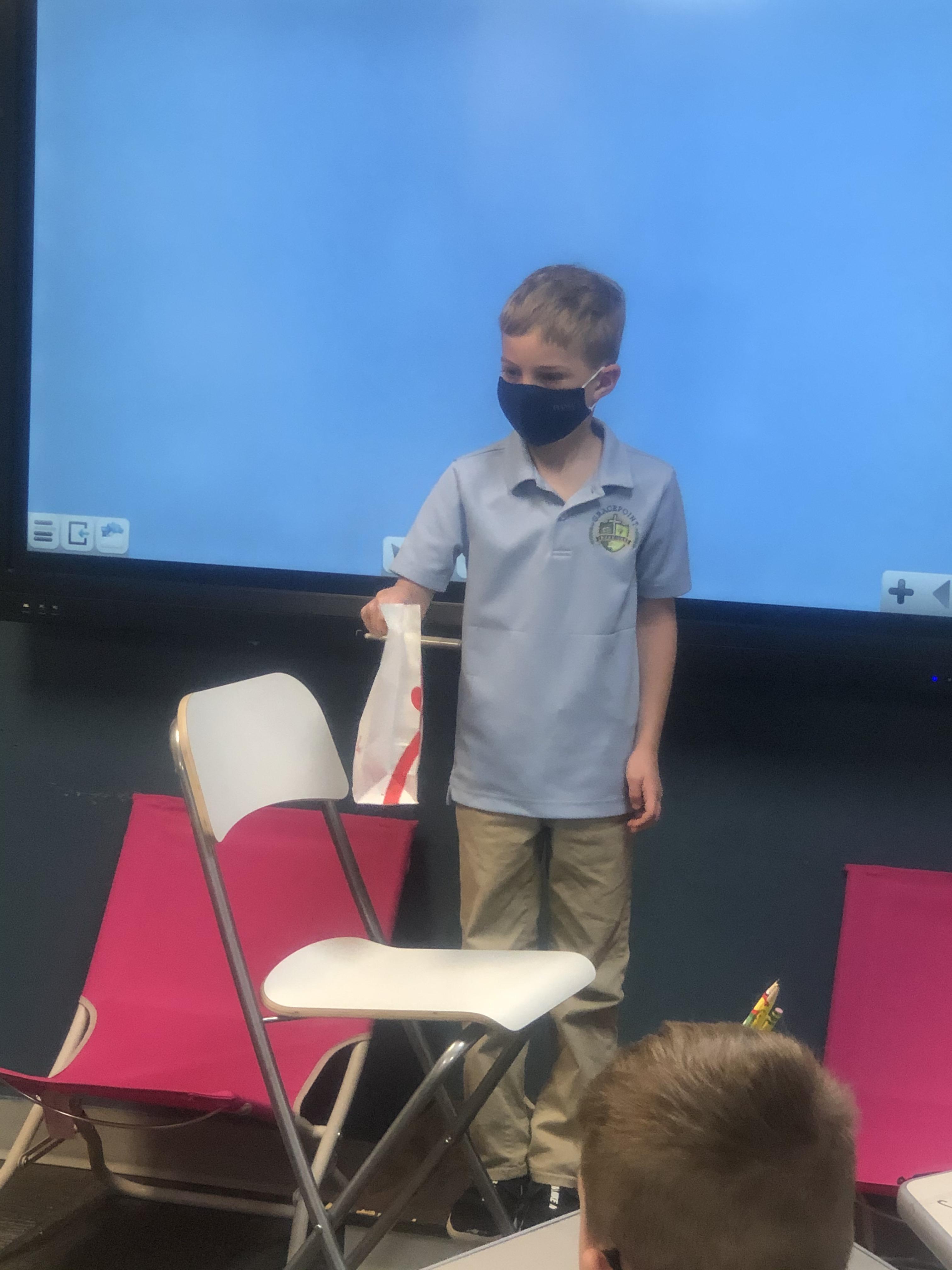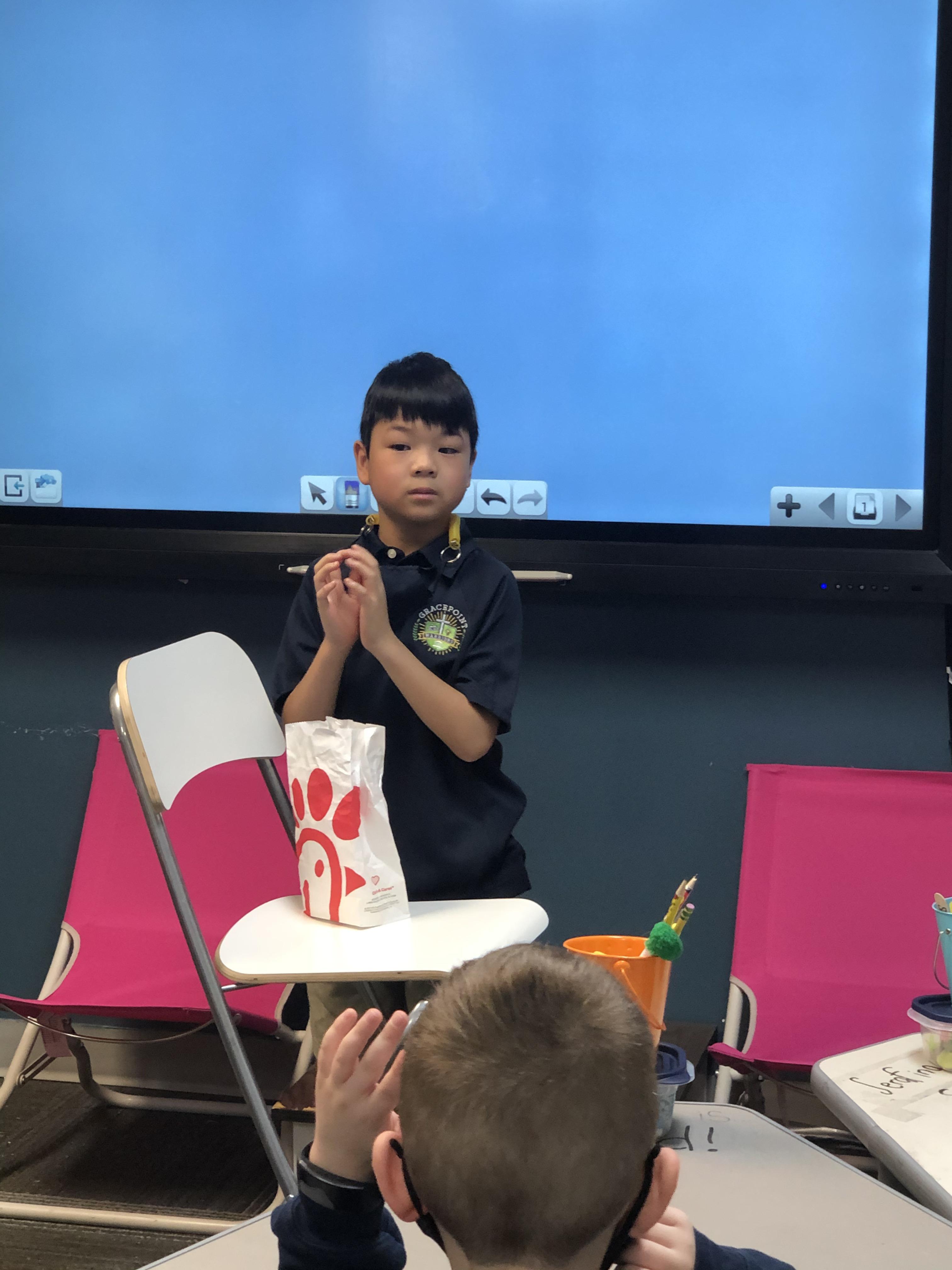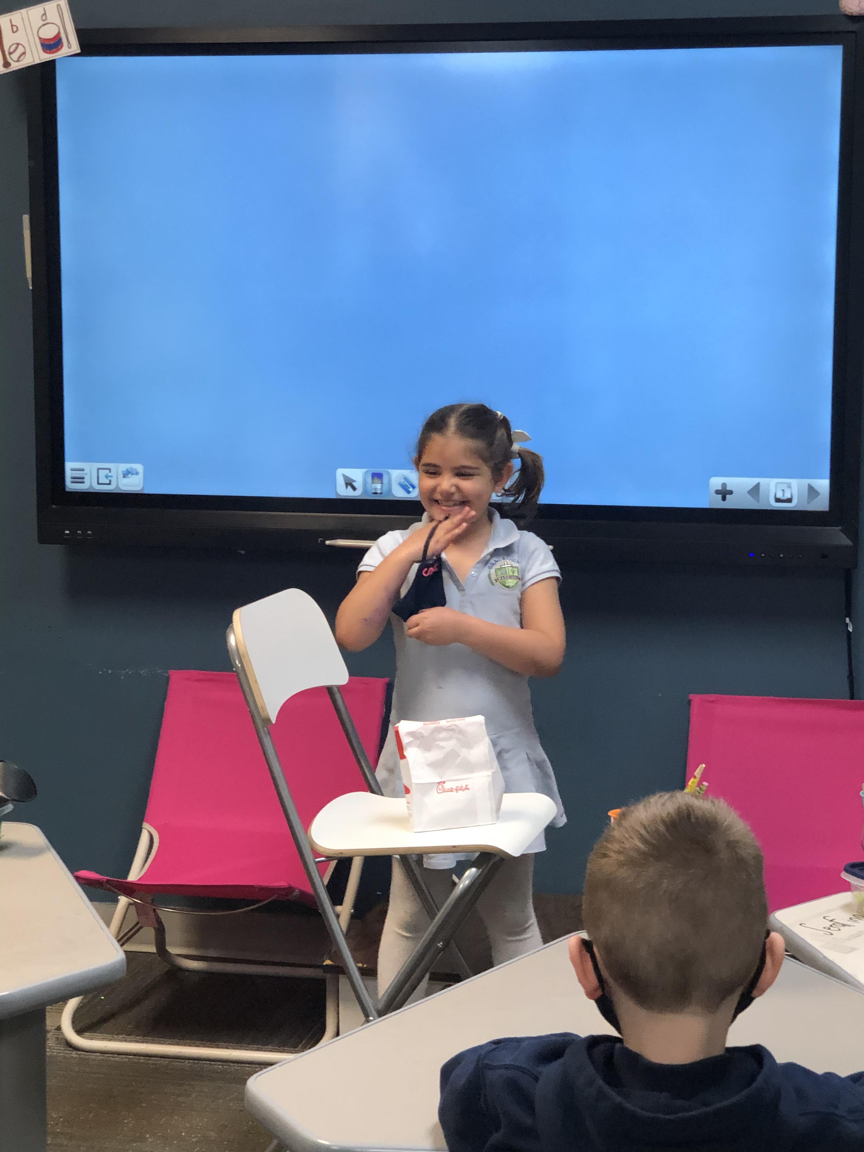 Mystery Bag Adjective Review Game: Students had to give adjectives as clues for what was inside their mystery bag hoping to help their classmates guess the object!